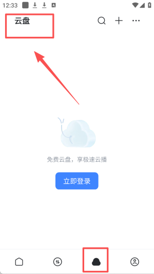 3、在云盘页面,点击“云盘”标签,查看云盘功能。