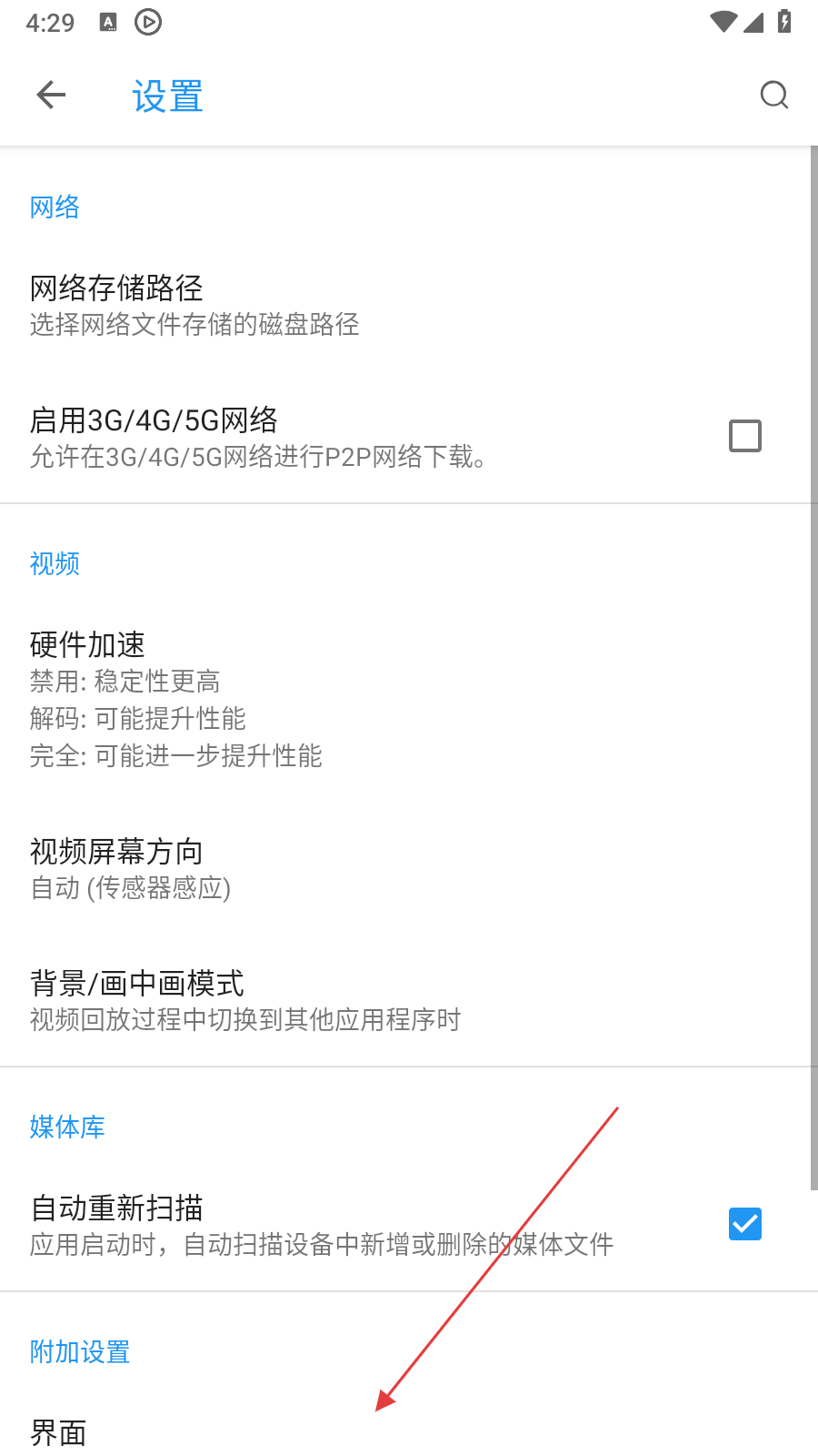 3、在设置页面找到【界面】选项,点击进入界面设置页面。