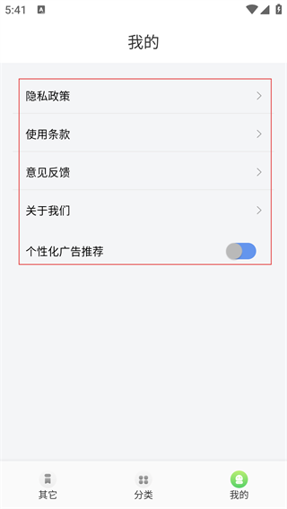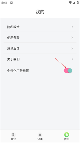 3、在【我的】页面,找到【个性化广告推荐】选项,点击其开关按钮。