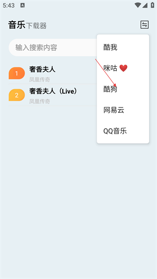 2、在音乐下载器主界面,点击右上角切换平台图标,展开音乐平台列表。