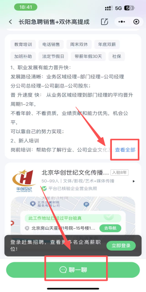 3、滑到详情页底点“立即登录”,补充简历后一键报名多家企业销售岗。
