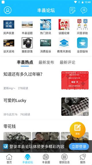 丰县论坛app为广大丰县人民提供了一款本地生活数字化服务平台,其由徐州华龙网络科技传媒有限公司开发,内包含当地新闻报道、招聘信息、项目投资、活动规划、生活服务等等超多类目,丰县人民能够找到自己想要的信息,全方位为你放送最新最全的资讯。