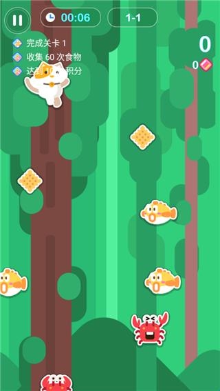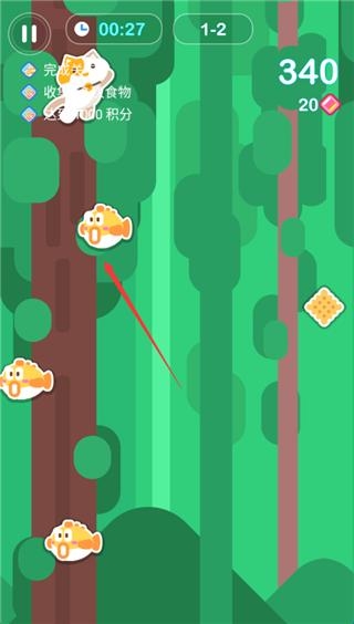 1、游戏中玩家通过点击屏幕控制猫咪进行跳跃