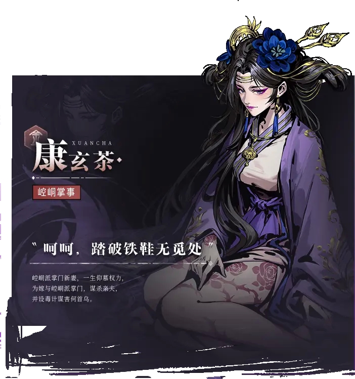 崆峒派掌门新妻,一生仰慕权力,为嫁与崆峒派掌门,谋杀亲夫,并设毒计谋害何首乌。