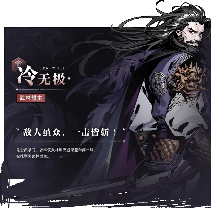 昆仑派掌门,曾率领武林剿灭虚无盟和闻一峰被推举为武林盟主。