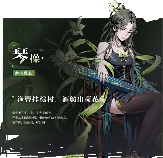 出生于官宦之家,是大家闺秀。琴操从小聪明伶俐,相传她自幼才貌出众,通音律,通佛书,解诗词。