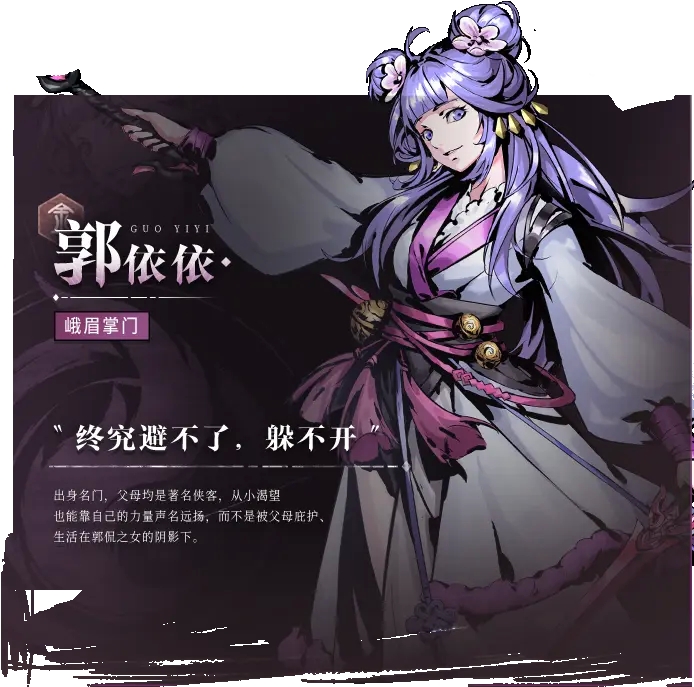 出身名门,父母均是著名侠客,从小渴望也能靠自己的力量声名运扬,而不是被父母庇护生活在郭侃之女的阴影下。