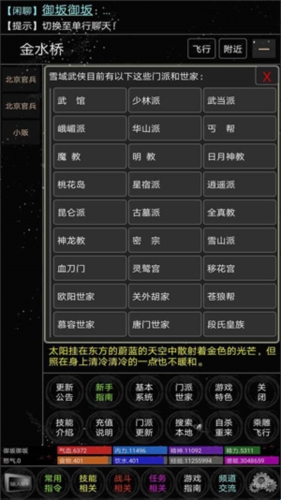 2、雪域江湖游戏截图中门派指南上的那些门派,全部都能拜师(武馆除外)。