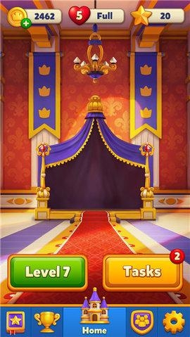 皇家比赛是一款融合了三消益智与轻度装饰玩法的休闲游戏,凭借其精致的画面与流畅的操作体验,成功吸引了大量玩家的目光。游戏的主角是可爱的罗伯特国王,玩家将肩负起帮助他重建和装饰王国城堡的任务。每通过一关三消关卡,就能获得金币和材料,用于修复并美化王宫中的各个房间。