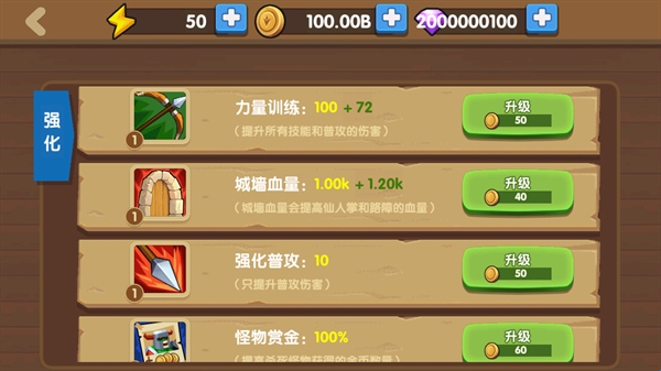 6、强化你的技能,既可以强化力量训练,也可以强化城墙血量等等。