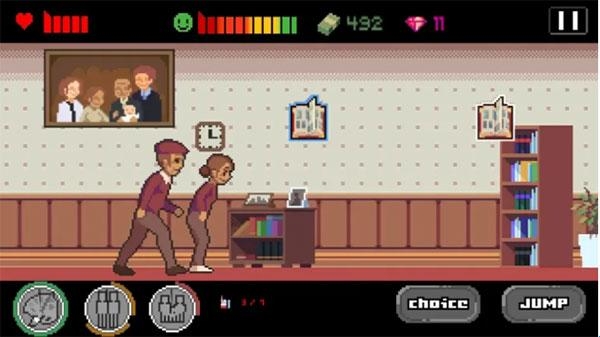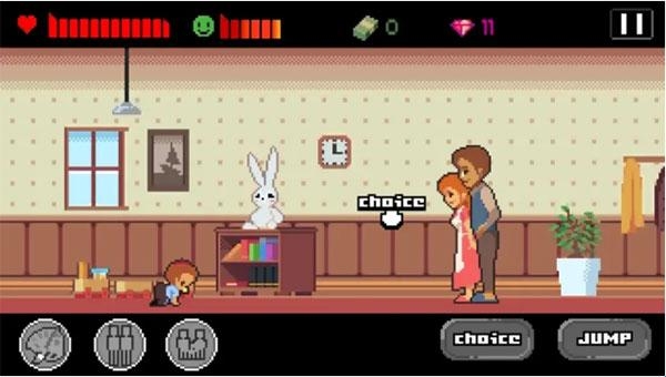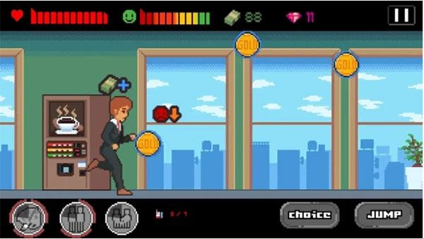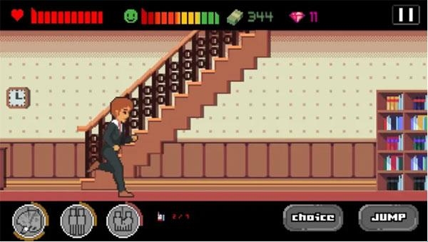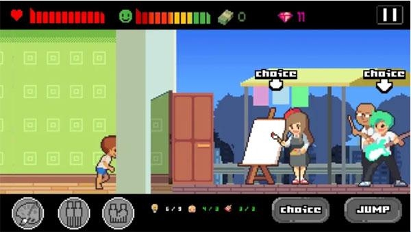 6、人生游戏在这款横版卷轴游戏中获得的金币数量和按钮的选择决定了你是谁,你将成为谁