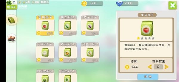 拥有超大的初始耕地面积,可以自由的选择开垦地块的位置和区域。不同的季节会有不同的农作物种子可以选择,注意应季种植。