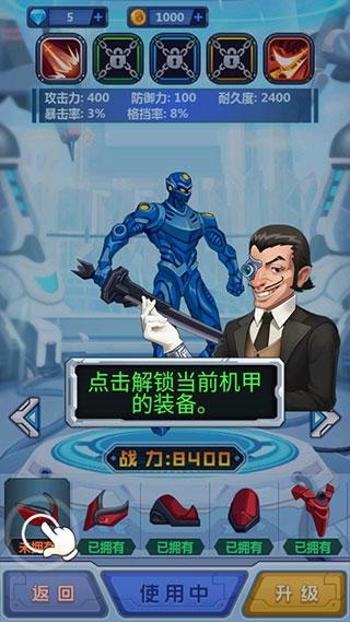 3、获得机甲后逐步的将机甲装备进行穿戴;