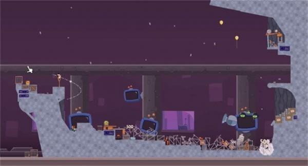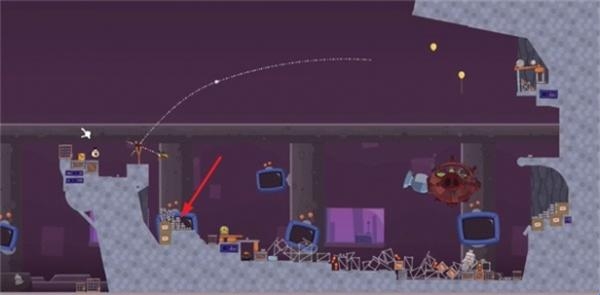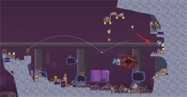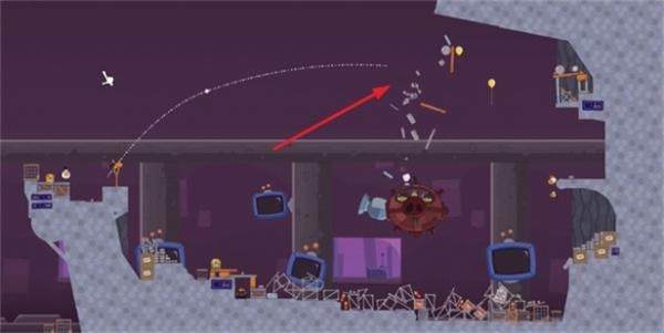 2、一开始是无法攻击到boss,这个boss会后退,利用弹射原理,摧毁前方的建筑物。