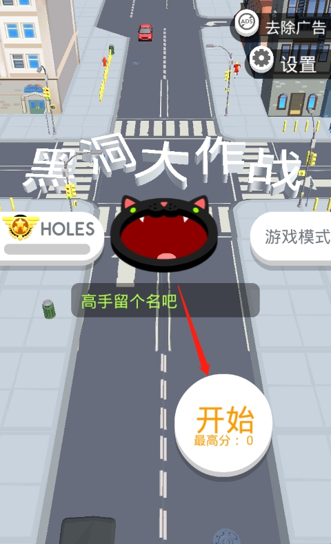 3、开始游戏,记住找到小洞来吞噬,看见大洞就马上掉头跑,直到这里的大洞都被你吃掉。