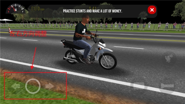 1、这款游戏是用虚拟按键进行操作的,每个按键都对应了驾驶摩托的的动作。