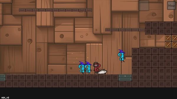 2、在这里玩家即将扮演的是一个咸鱼化身的英雄,并与邪恶的b宫怪进行战斗,游戏的画面上十分的简洁。