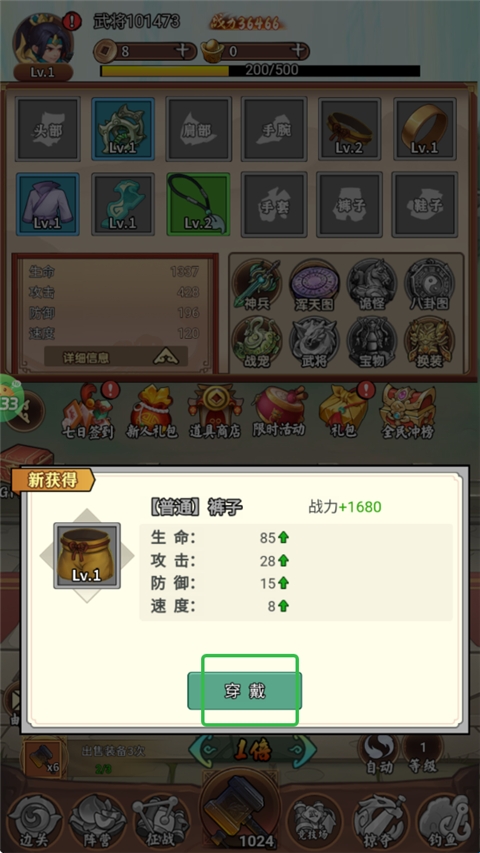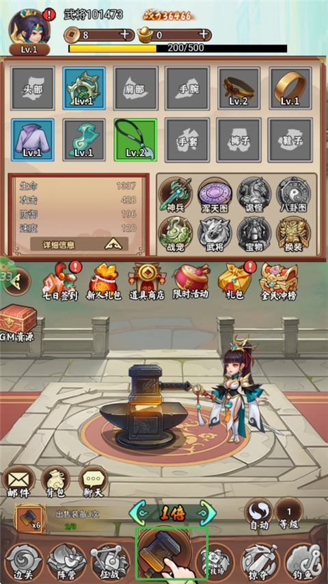 5、玩家可给锻造台升级,提升获得稀有装备的概率。