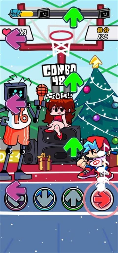玩家操作角色在确切的节拍上点击确切的箭头,游戏的操作相对来说非常的简单,但是随着游戏的进度越快,操作起来会手忙脚乱。