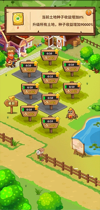 3、在这里你可以自由的进行升级,还能够解锁出更多不同的土地来赚取到更多的收益。