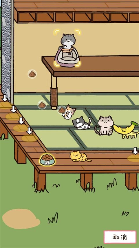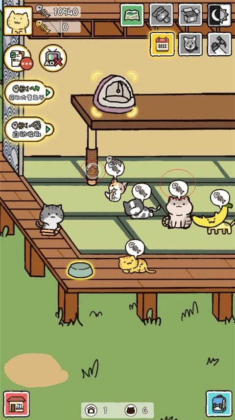 1、猫爬架、猫爪垫、猫砂盆、猫窝、小鱼缸、被炉等丰富多样的家具和玩具等待你收集,打造出个性化的猫咪庭院。