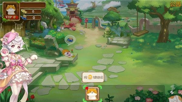 2、公园的娴静时光也让猫咪们有个舒心的环境,与小猫进行互动后会获得相应的好感度,当好感满级后就能领养带回家了。