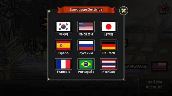 2、进入游戏首页,右边language玩家可以通过它调节系统语言。