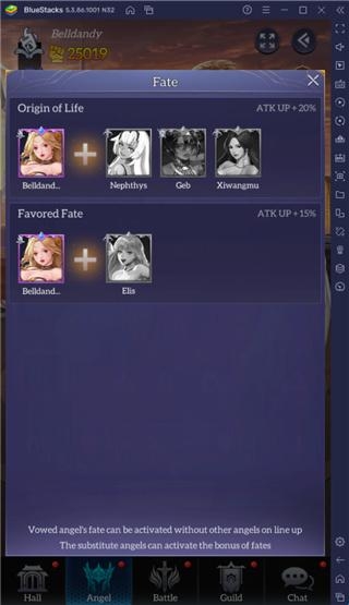 空闲天使的一个有趣功能是天使命运。每当某些天使成为阵容的一部分时,此功能都会授予天使奖励和增益,例如额外的攻击力。