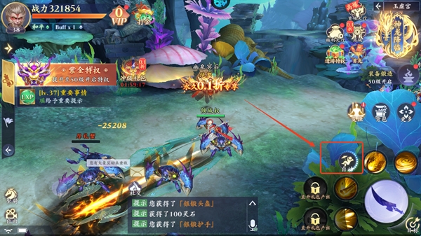 3、你可以通过右下角触屏的方式进行释放技能,从而更加快速的击败敌人;