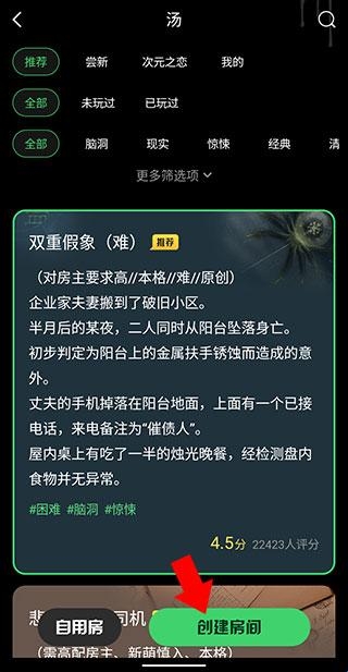 3、选择汤(剧本),并点击创建房间。