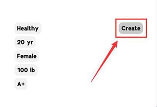 1、进入游戏之后,可以看到目前的界面是英文状态,我们先点击右上角的Create按钮,随意创建一个人体模型。
