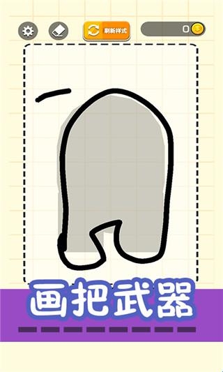 1、玩家进入游戏之后就可以点击开始游戏,在自己想要的区域画出想要的武器;