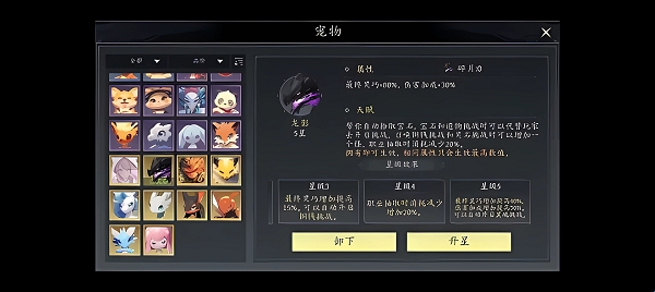 2、宠物:宠物分3个主属性加成和五行伤害加成5种,宠物3星会开启金钱自动挑战,5星开启灵魂自动挑战,可以一大部分解放双手,同时每个宠物都有一些特别加成,比如点属性塔少金钱,换职业摇技能少灵魂等,拥有就可以生效,建议宠物优先五星。