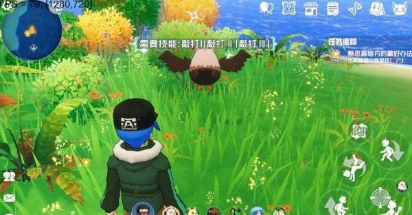 2、看见发光的物体后,点击投掷 按钮 ,就可以召唤幻兽帮忙采集野外的素材了。不过请注意,必须要有携带相应技能的幻兽才可以完成采集。