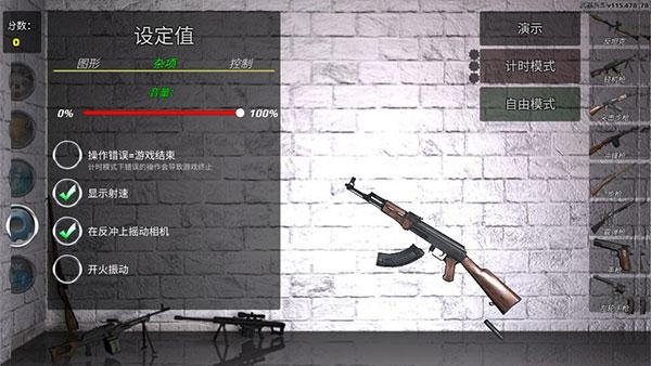 1、进到游戏后,玩家可以通过左侧的控制面板对枪支进行设定。