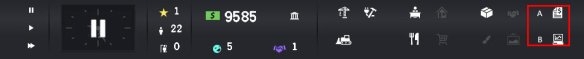 ⑧而在右侧则是各类建筑构造和养护的按钮。这一部分的内容我们放到其他章节逐一说明。但是这里有两个值得详细解说的特殊按钮。首先,按钮A能够让我们检查已经签订的合约和可签订的合约。而按钮B可以让我们查看各类数据的报表。