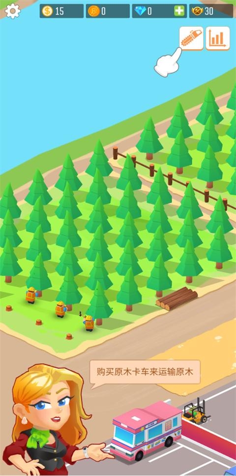 建立铣削链:购买和升级机器,加速原木的处理,生产更多木材产品,维修和升级车辆以保持工厂的稳定运转。