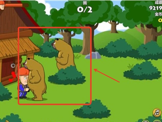 3、开始游戏后玩家需要查看角色不让变异熊靠近木屋。