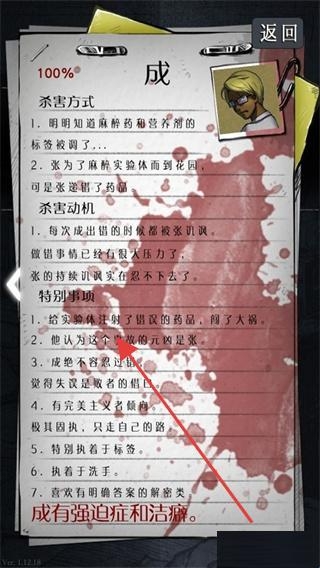 2、查看档案内容时注意到【成有强迫症和洁癖】这一关键信息。