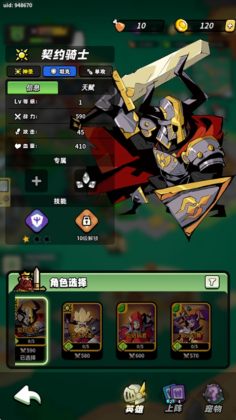 契约骑士(T0级),能扛能打,30级解锁眩晕。(新人可以白嫖10级,详情资源篇会出。)