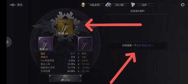 进化:是俩把史诗+的武器进行武器升级到传奇,简单来说就是金色传说,数值也会有更大的提升!