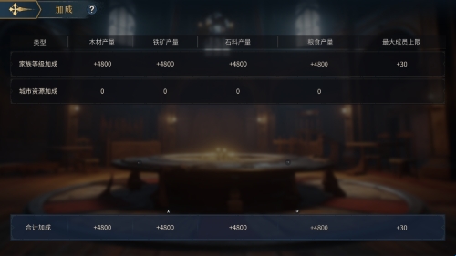 在游戏刚开之际,玩家可以通过用宝石来创建家族,玩家在加入家族后可获得一定的资源量加成,家族提供的资源加成和家族等级以及占领的城池有关。