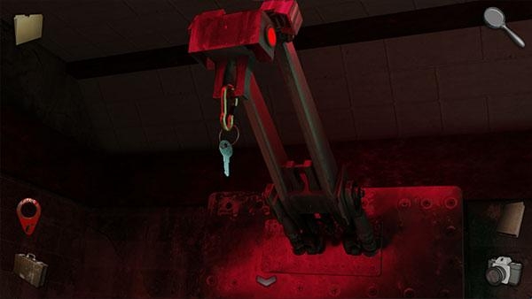 4、从挂钩上取下钥匙,并关掉门边的灯,注意墙上的裂缝。
