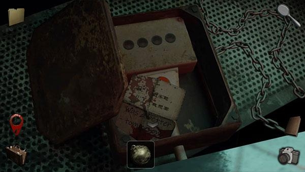 5、使用钥匙打开地板里孔中的挂锁,收集链子、信封以及牙签盒。