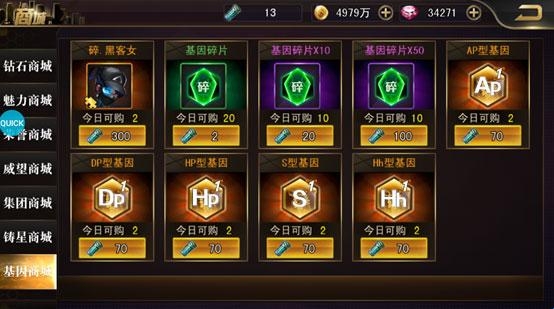 3、基因加成:挑战获得星数可以用来激活基因加成,可以选择不同星数的加成,基因加成只在当前基因挑战内生效(次日重置)