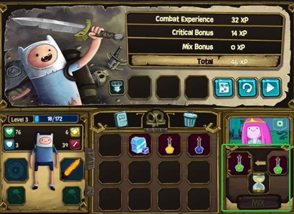 2、每关结束后,玩家有机会获得新的物品,并通过混合来制造更强大的装备。