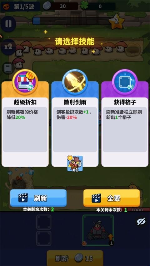 4、当击败每一波敌人后可获得一个技能。