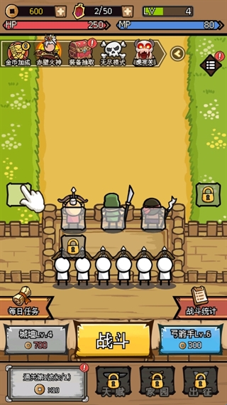 2、布防升级:建设建筑,提升防御设施,抵抗源源不断的敌军入侵。