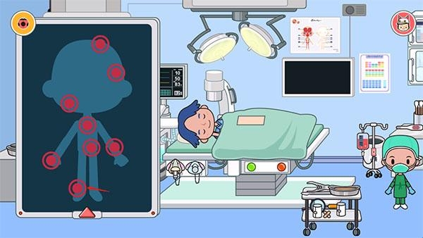 手术台提供为病人做8种大型手术的诊断,使用真实医院中的工具,绷带,病床,轮椅等等;实验室可使用神秘的元素,合成不同效果的胶囊。