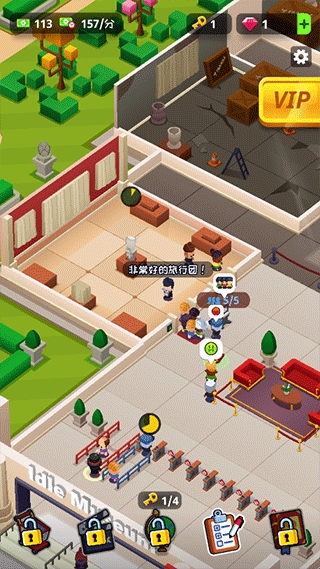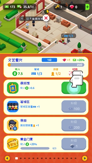 翻新你的博物馆,随着等级提升改变装饰,还可以收集特殊的装饰品来点缀你的博物馆,当然,门票也必须涨价了。
